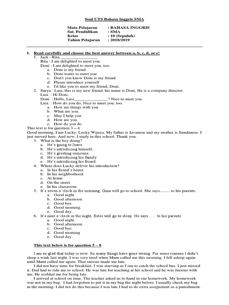 There are interesting prizes for the three best winners. Pasalnya semakin sering berlatih soal akan membuat otak kita menjadi lebih bereaksi. Baiklah cukup sekian contoh soal uts/mid semester bahasa inggris kelas 11 kali ini. March 9, 2021 by abdillah alhasni. Administrasi yang akan kami bagikan kali ini berupa soal uts bahasa inggris k13 jenjang sma untuk kelas 10. The name bbc is short british broadcasting corporation. Soal uts bahasa inggris kelas 10 semester 1 beserta jawabannya. Soal uts bahasa inggris kelas 10 sma semester 2 kurikulum 2013 dan kunci jawaban pts semester genap. Contoh soal uts bahasa inggris ganjil kelas 10 sma smstr. It is a special month. Contoh soal uts/mid semester ganjil bahasa inggris kelas x sma halo teman semua, bertemu lagi bersama kami disini. Soal bahasa inggris kelas 10. Jika di smp kamu menemukan teks yang mudah, soal bahasa inggris kelas 10 menjadi lebih rumit.